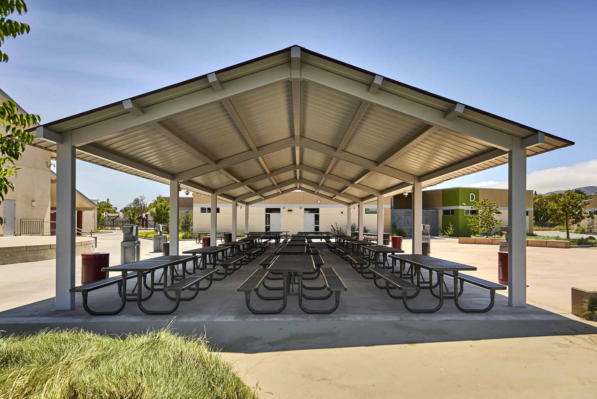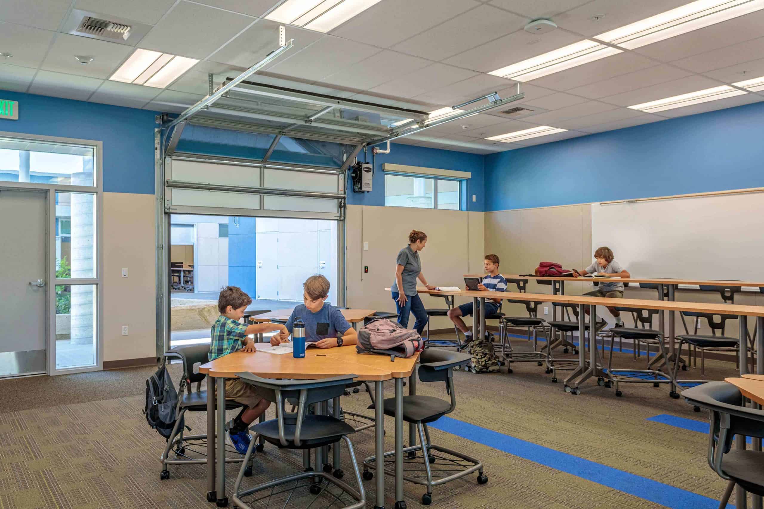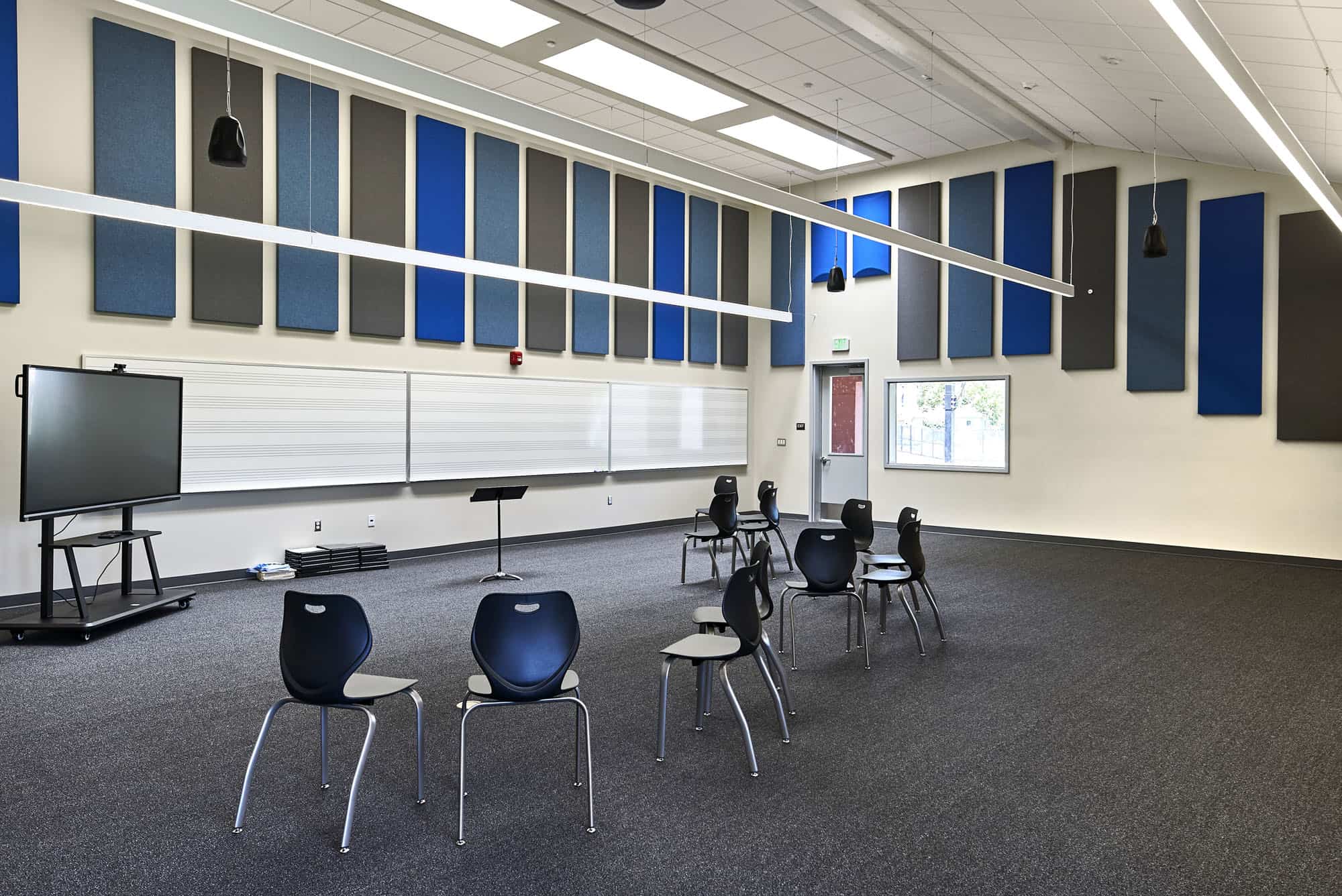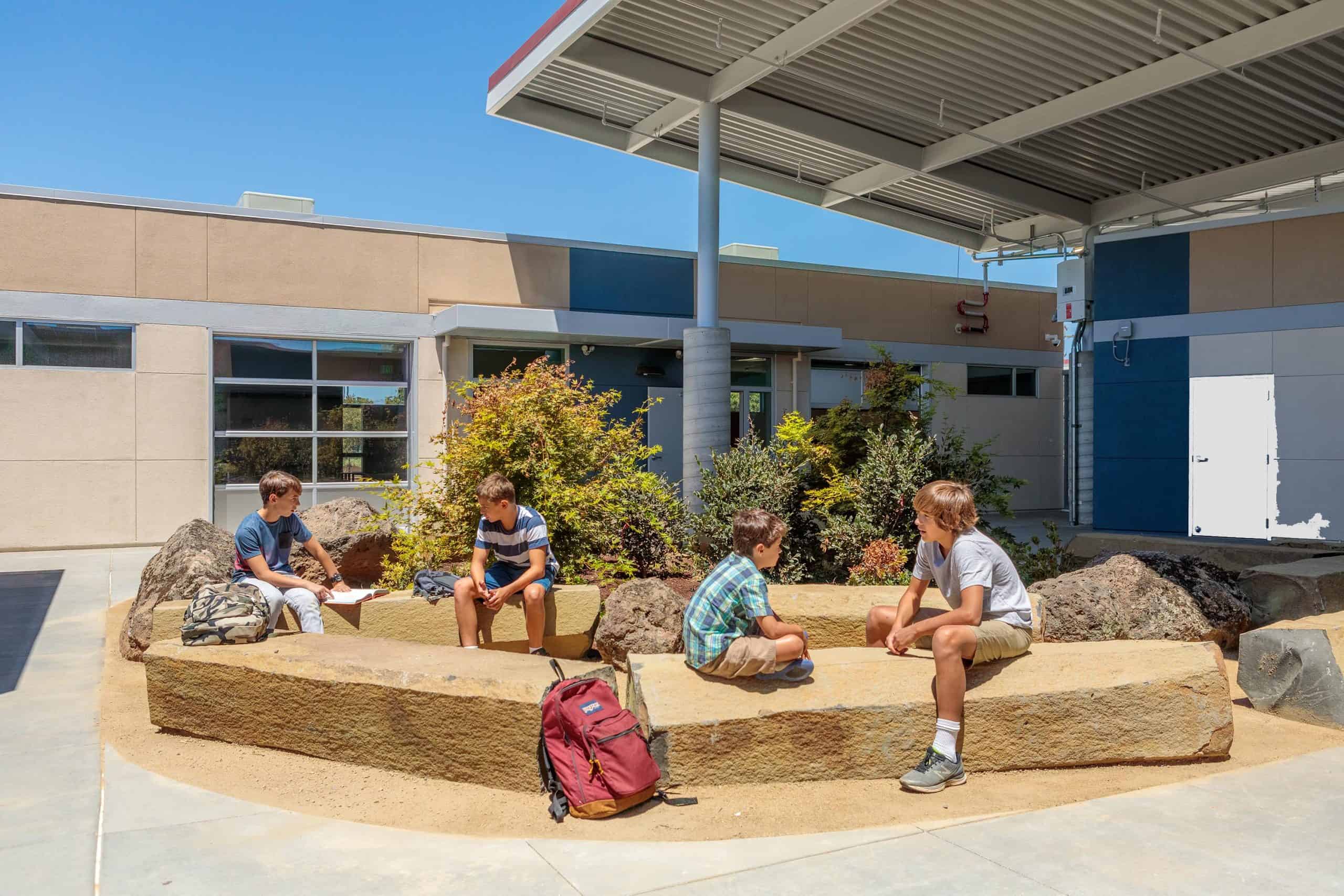 The phased renovation of Brownell Middle School included a complete campus reconfiguration. The new buildings consist of single-story construction of six learning communities, an administration building, a library/media center, and a kitchen addition in the Multi-purpose building. Each learning community has a shared, secure outdoor learning environment and the classrooms feature roll-up garage style doors to allow for collaboration between classes. Modernization and site improvements included upgrading the existing multi-purpose gym, PE and athletic facilities along the west and east side of the school, and new onsite utilities. New construction consisted of the addition of a new staff parking lot on the north end and staff and visitor parking lot on the west end, approximately 89 stalls, school signage, a new marquee sign, and multiple independent custom shade structures. Additionally, the school is equipped with solar panels and features a large central courtyard.