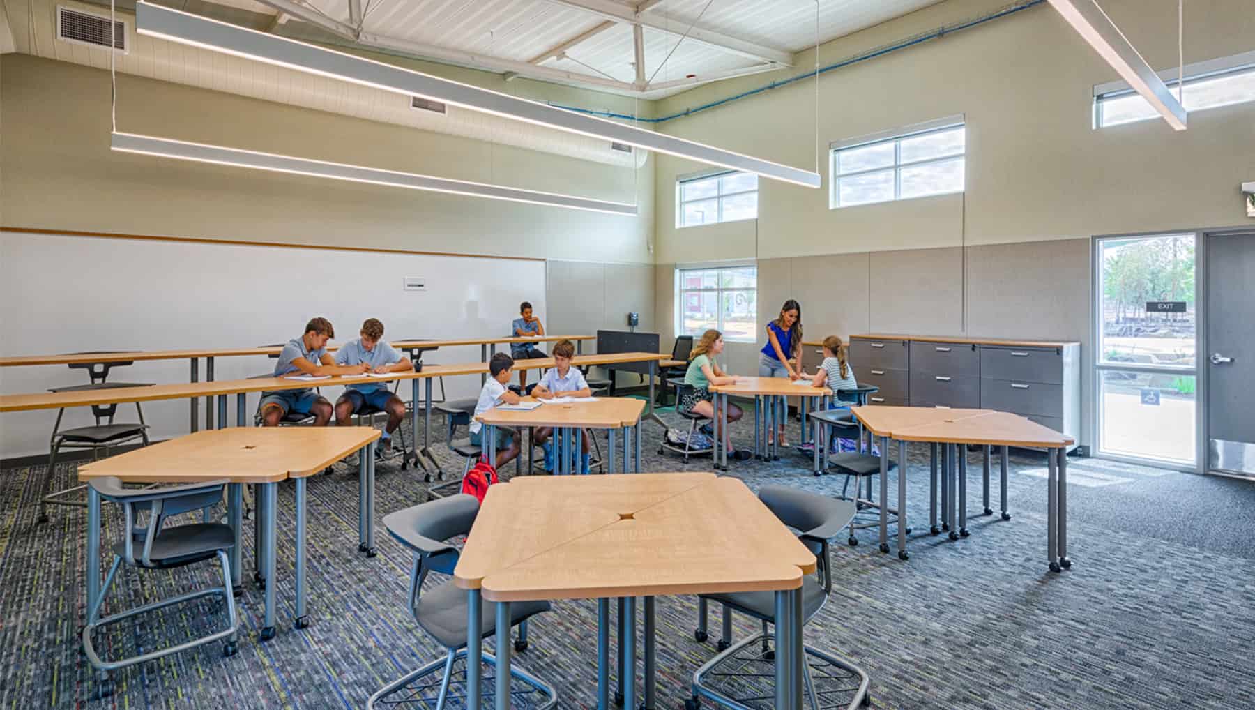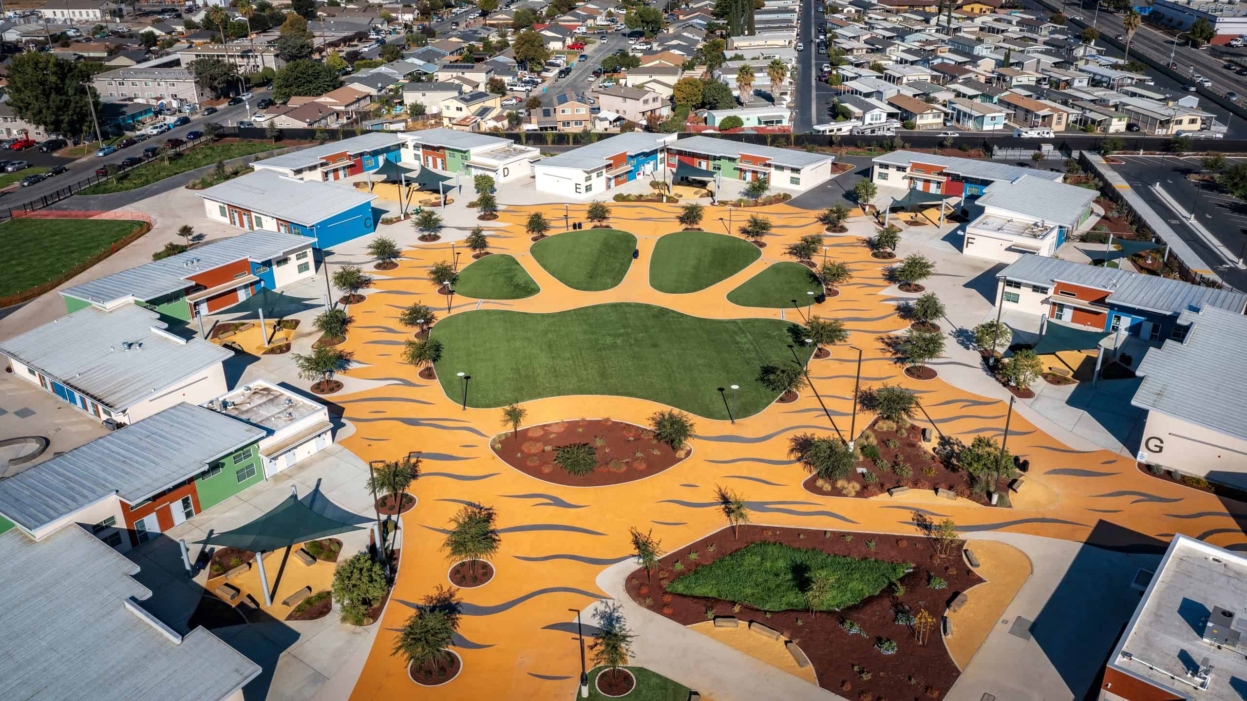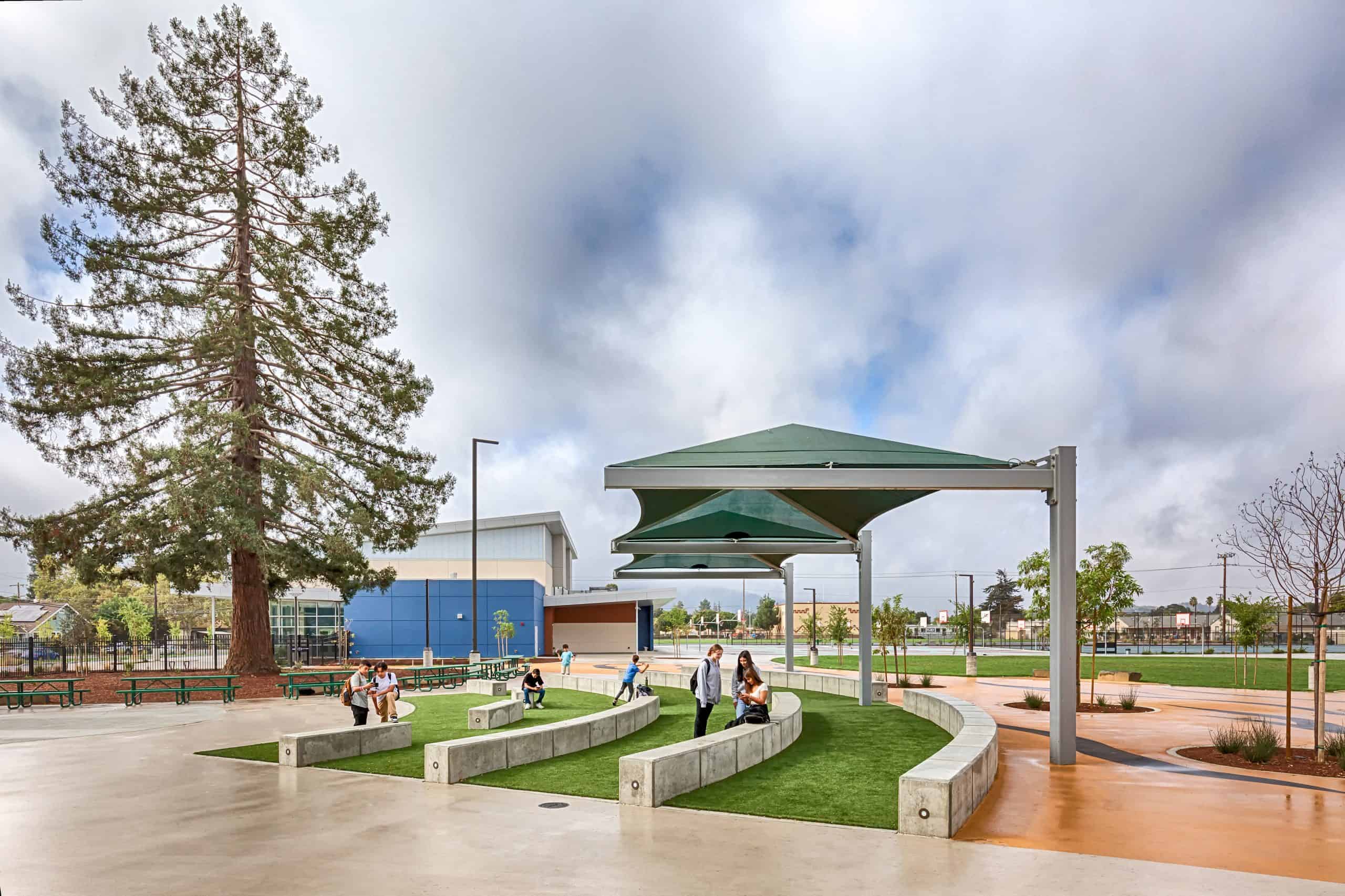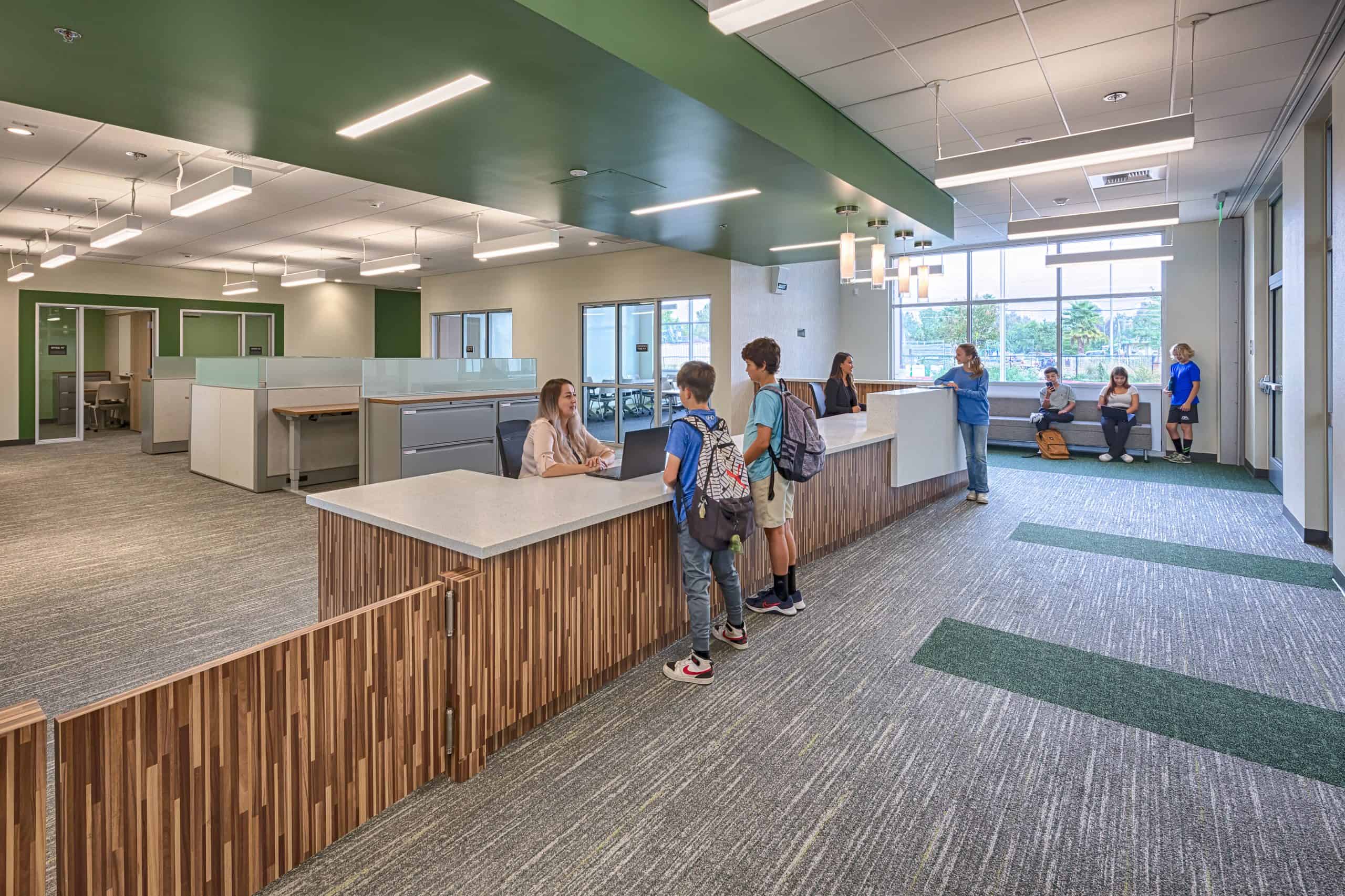 South Valley Middle School was built in the mid 1950’s as a high school and later converted to a middle school. The 21-acre campus, located in a diverse neighborhood, had reached its’ end of life and needed replacement. The new “Village Concept” design includes a completely new look for the school and relocates the entry from a congested neighborhood street to another, providing much needed traffic relief and a safer drop off zone for the students. The school now has new classrooms with outdoor learning areas, science lab and makers space classrooms, a signature administration building, a Multi-Use and library building, and new gymnasium with a weight room and indoor climbing wall. Tiger Quad, at the heart of the school, depicts the school’s mascot’s tiger paw, surrounded by the new outdoor learning spaces. This project was constructed on an occupied campus and was phased to allow for minimum occupancy disruption.